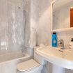 El apartamento incluye 2 baños completos con bañera, equipados con dos rollos de papel higiénico, jabón de manos, champú, gel de ducha, una toalla de manos y una alfombrilla para el suelo en cada baño.